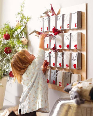 No interior desse calendários colocam-se chocolates, lista de tarefas a realizar em família, um pequeno brinquedo, enfim depende da vontade de cada um.